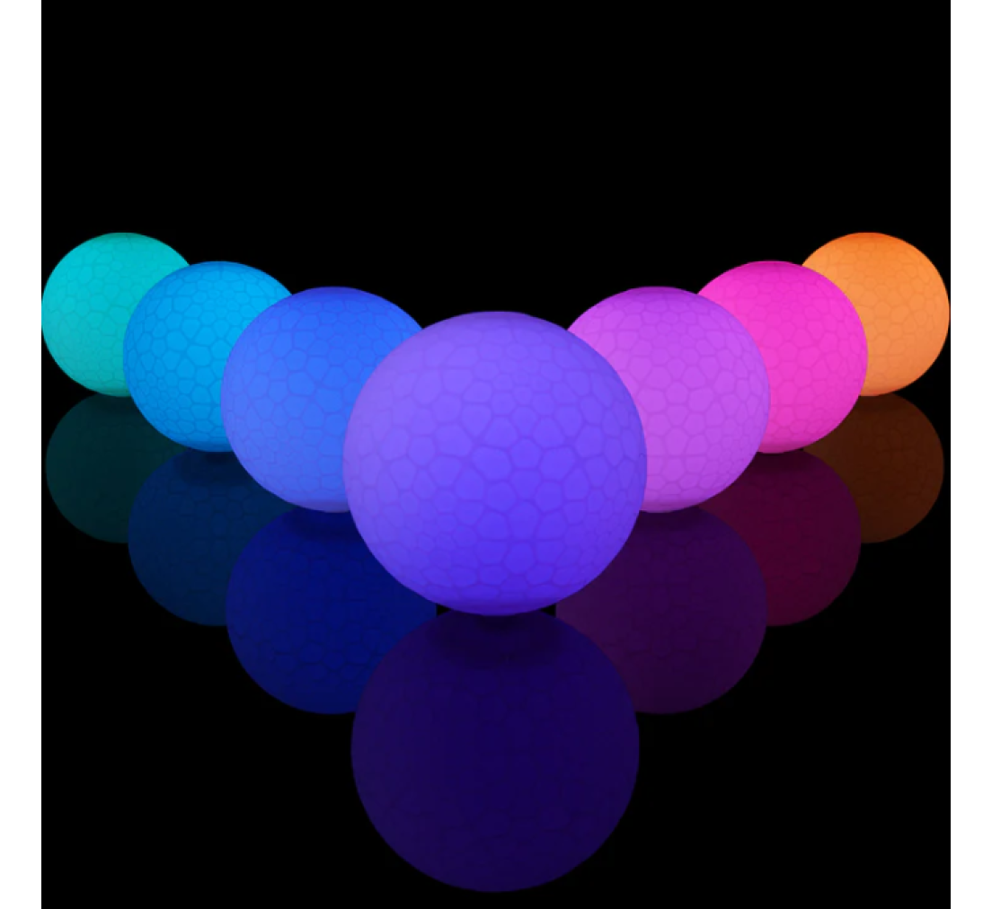 Het resultaat? Een prachtige, zachte, maar stevige bal die uitblinkt in contact poi, contact juggling, stage performance, maar ook gewoon schittert als sfeerverlichting of decor.